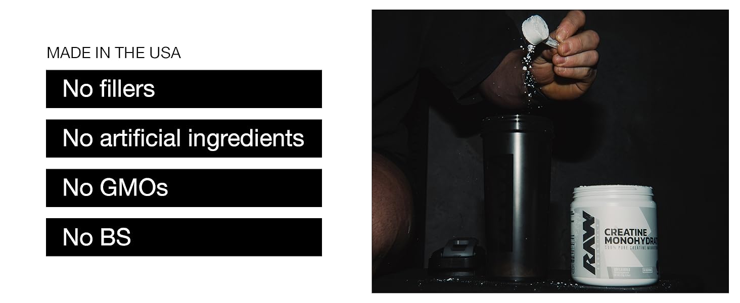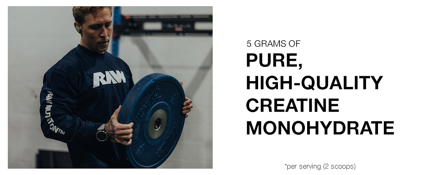 RAW Nutrition Creatine Monohydrate Powder, Unflavored (50 Servings)