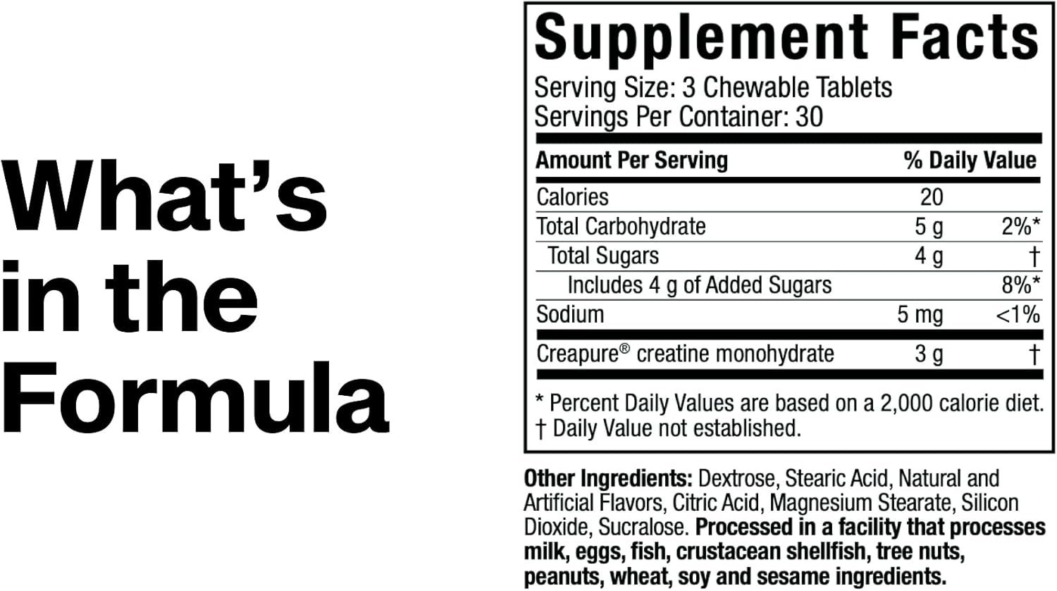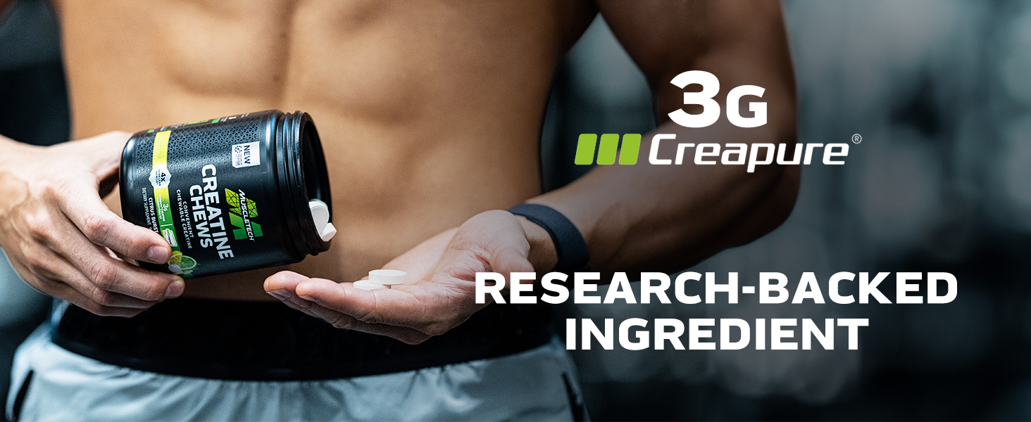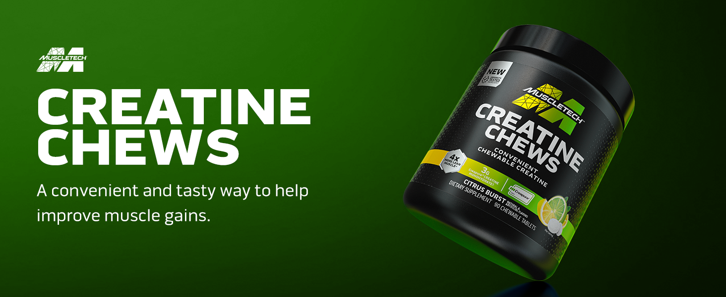 MuscleTech Creatine Chews คือผลิตภัณฑ์อาหารเสริม Creatine Monohydrate ที่มาในรูปแบบ "เม็ดเคี้ยว" (Chewable tablets) ซึ่งออกแบบมาให้ทานง่ายเหมือนขนม แทนที่จะเป็นแบบผงชงดื่มดั้งเดิมที่หลายคนอาจจะรู้สึกว่ายุ่งยากหรือละลายยาก