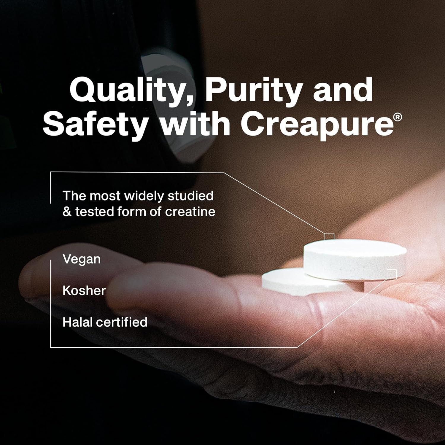 - Creapure Creatine Monohydrate: ใน 1 เสิร์ฟ (ประมาณ 3 เม็ด) จะให้ครีเอทีนประมาณ 3 กรัม ซึ่งเป็นสารที่ช่วยเพิ่มการสร้างพลังงาน ATP ในเซลล์กล้ามเนื้อ