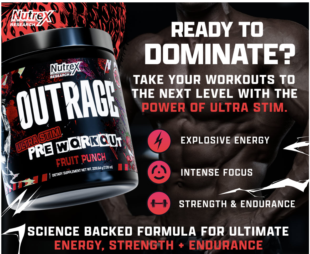 Nutrex Research Outrage คือผลิตภัณฑ์เสริมอาหารประเภท Pre-Workout (พรีเวิร์คเอาท์) สูตรเข้มข้นพิเศษที่เรียกว่า "Ultra Stim" ครับ ตัวนี้ออกแบบมาสำหรับคนที่ต้องการพลังงานแบบพุ่งพล่านและการโฟกัสที่สูงมากในการออกกำลังกาย โดยมักจะเน้นกลุ่มผู้ที่ฝึกหนักหรือนักกีฬาที่มีประสบการณ์สูง